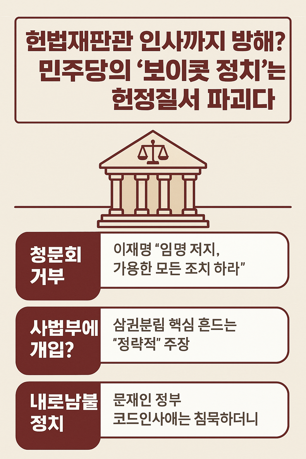 “헌법재판관 임명까지 방해? 민주당의 ‘보이콧 정치’는 헌정질서 파괴다”